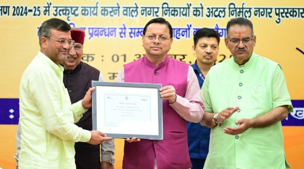 अटल निर्मल नगर पुरस्कार 2025: रुद्रपुर प्रथम, पिथौरागढ़ द्वितीय, कोटद्वार तृतीय।