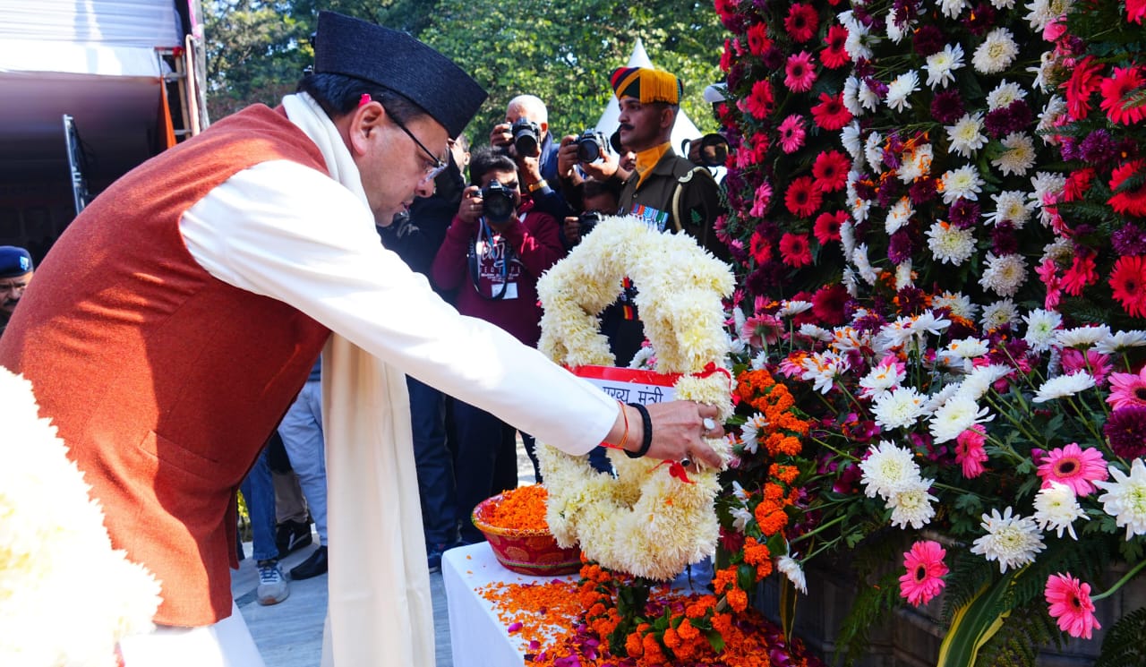 मुख्यमंत्री पुष्कर सिंह धामी ने मंगलवार को विजय दिवस के अवसर पर गांधी पार्क, देहरादून में आयोजित श्रद्धांजलि एवं सम्मान समारोह कार्यक्रम में प्रतिभाग करते हुए शहीद स्मारक पर पुष्पचक्र अर्पित कर वीर बलिदानियों को श्रद्धांजलि दी। इस अवसर पर उन्होंने 1971 के युद्ध के सैनिकों और शहीदों के परिजनों को सम्मानित भी किया। कार्यक्रम में मुख्यमंत्री ने घोषणा की कि सैनिक कल्याण निदेशालय और जिला सैनिक कल्याण कार्यालय (डीडीहाट, हरबर्टपुर, पिथौरागढ़ एवं हरिद्वार) इन सभी पाँच कार्यालयों में सरकारी वाहन दिए जाएंगे।
