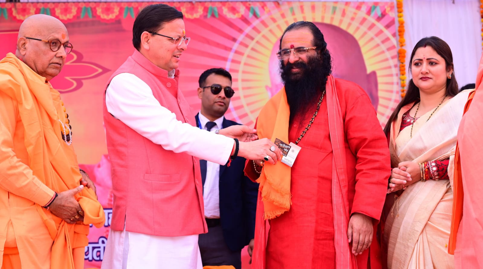रुड़की स्थित जीवनदीप आश्रम में आयोजित पाँच दिवसीय धार्मिक एवं सामाजिक महोत्सव में शामिल हुए सीएम धामी।