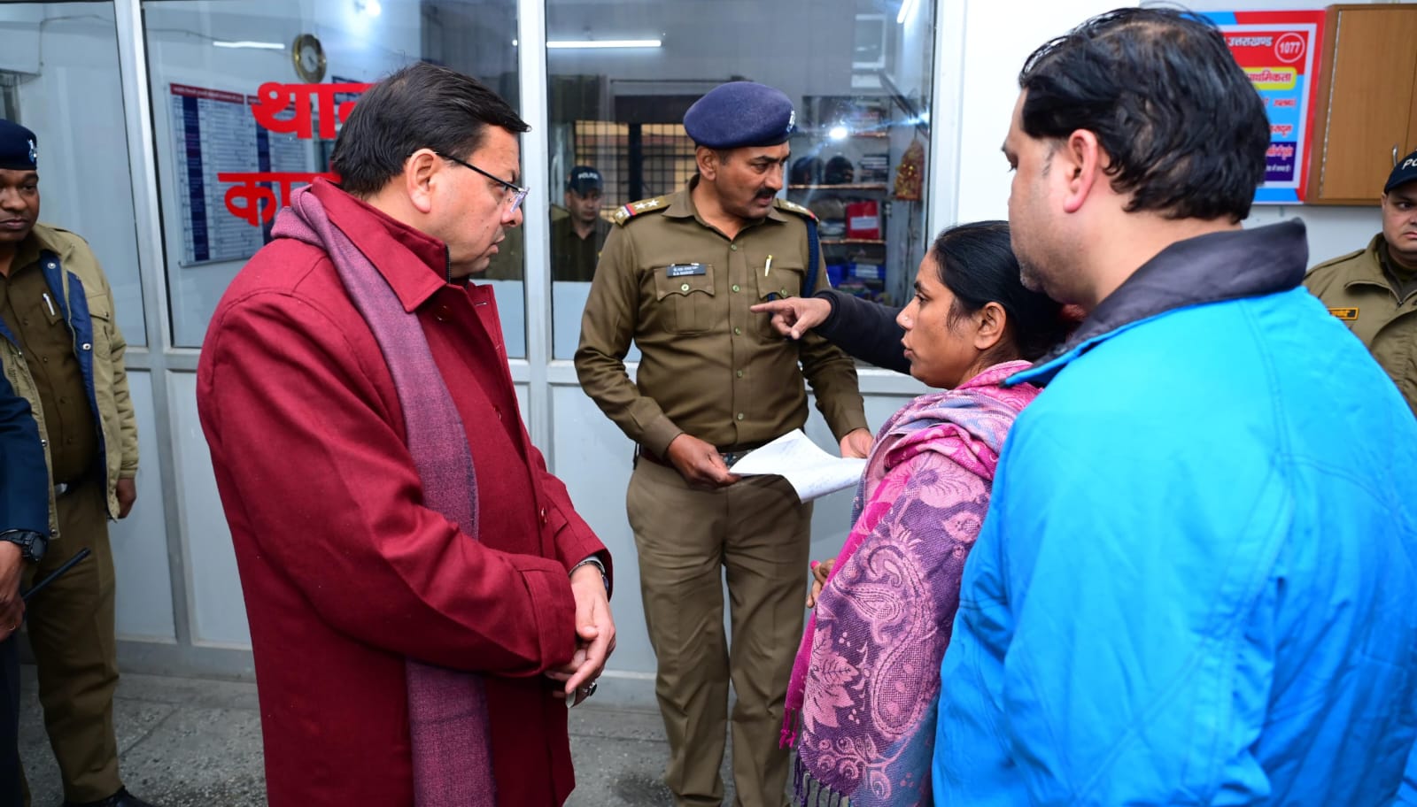 दरअसल, शुक्रवार को मुख्यमंत्री पुष्कर सिंह धामी बैठक करने के बाद अचानक पुलिस स्टेशन पहुंच गए। जहां सीएम ने पूरी कार्यप्रणाली का गहन निरीक्षण किया। मुख्यमंत्री के औचक निरीक्षण से पुलिस महकमे में हड़कंप मच गया और मौके पर व्यवस्थाओं की वास्तविक स्थिति सामने आई।निरीक्षण के दौरान मुख्यमंत्री ने पुलिस स्टेशन में आए कई शिकायतकर्ताओं से सीधे बातचीत की और उनकी समस्याओं को गंभीरता से सुना। उन्होंने पुलिसकर्मियों को निर्देश दिए कि शिकायतों को औपचारिकता नहीं बल्कि उत्तरदायित्व समझकर दर्ज किया जाए तथा उनका तत्काल, निष्पक्ष और प्रभावी समाधान सुनिश्चित किया जाए।